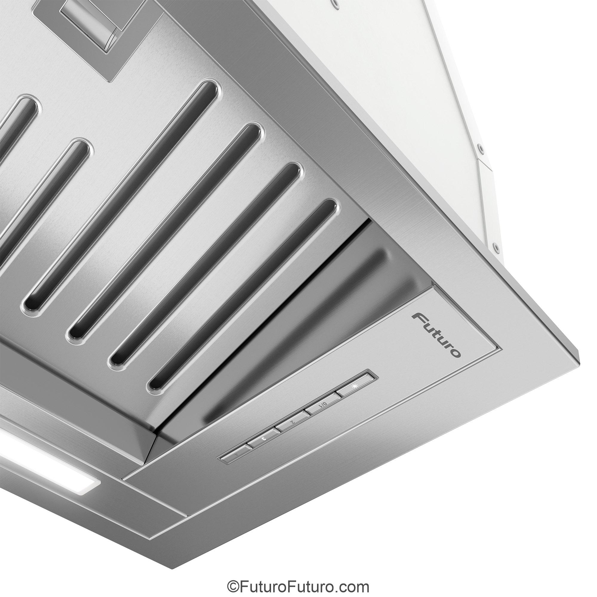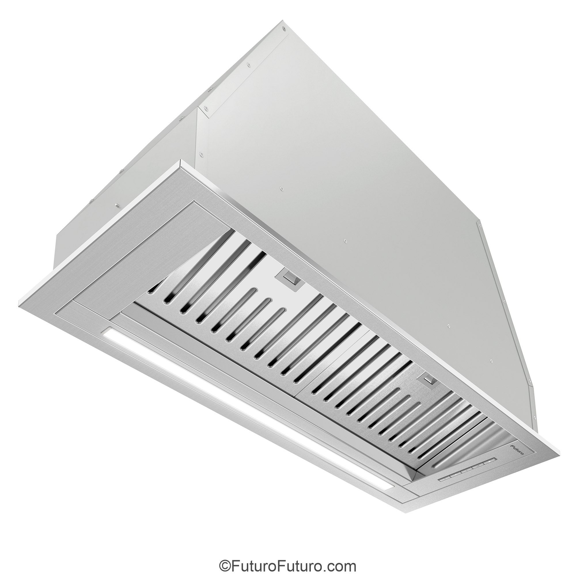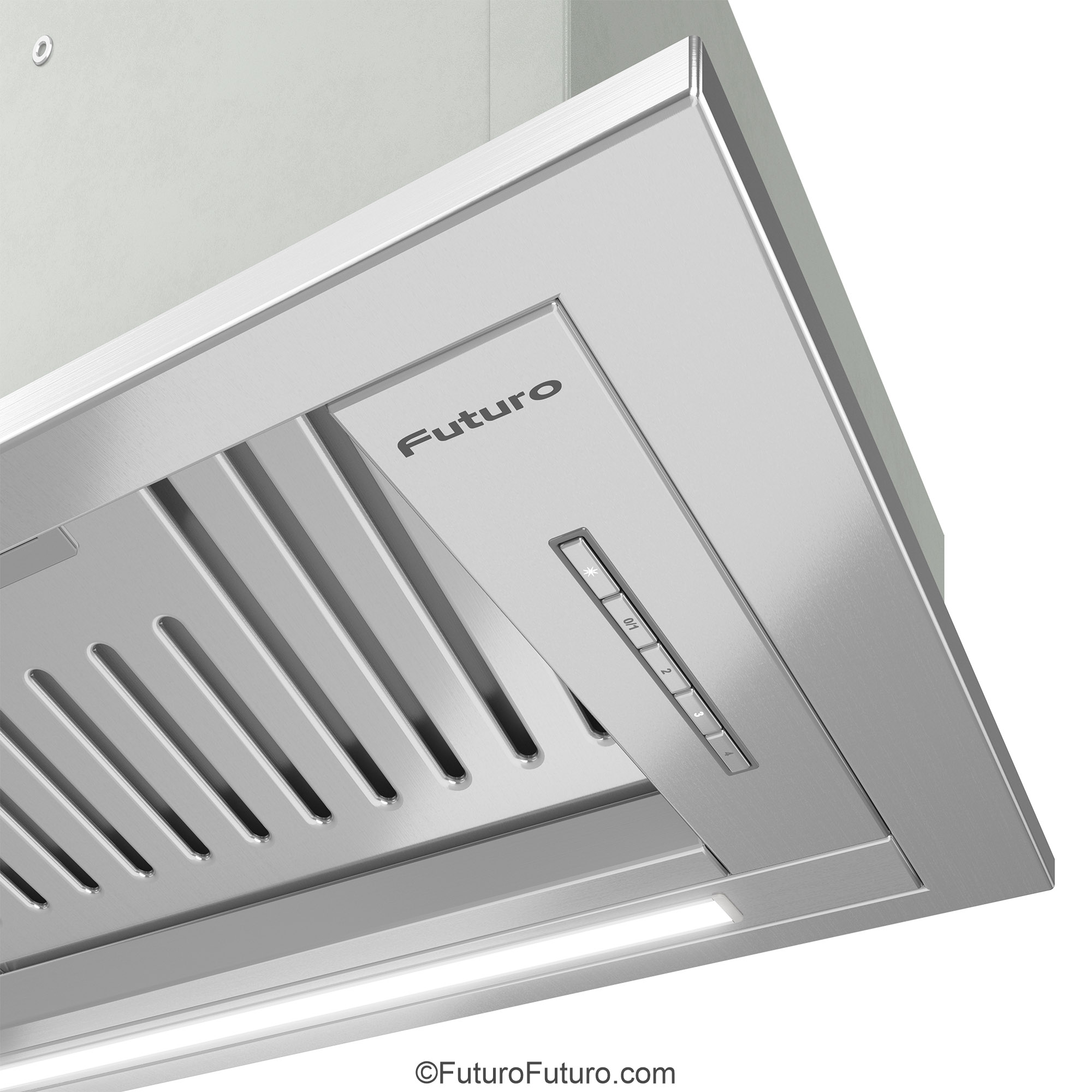Introducing the Futuro Futuro 30″ Designo Baffle Insert Under-Cabinet Range Hood — a seamless blend of minimalist Italian design and professional-grade ventilation.