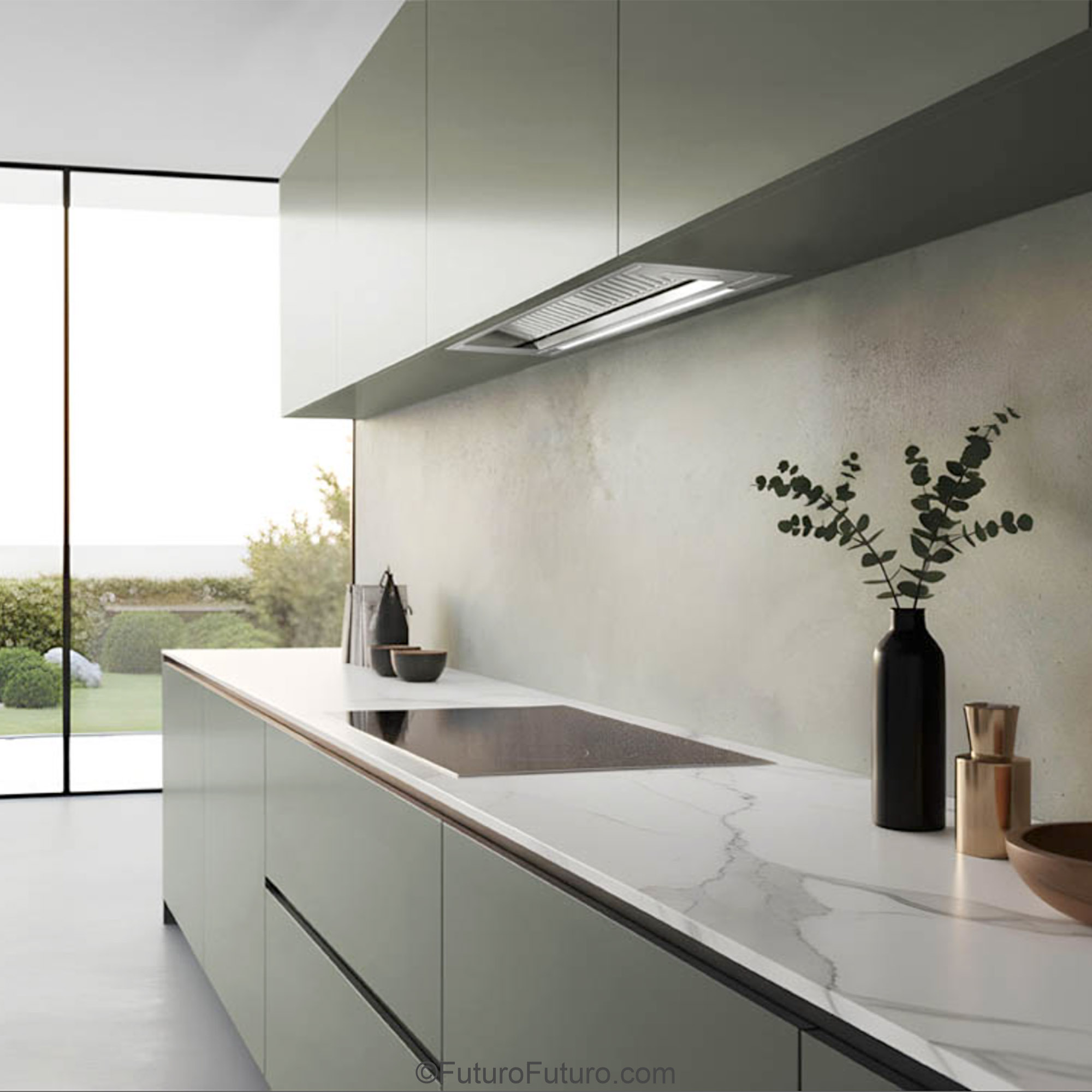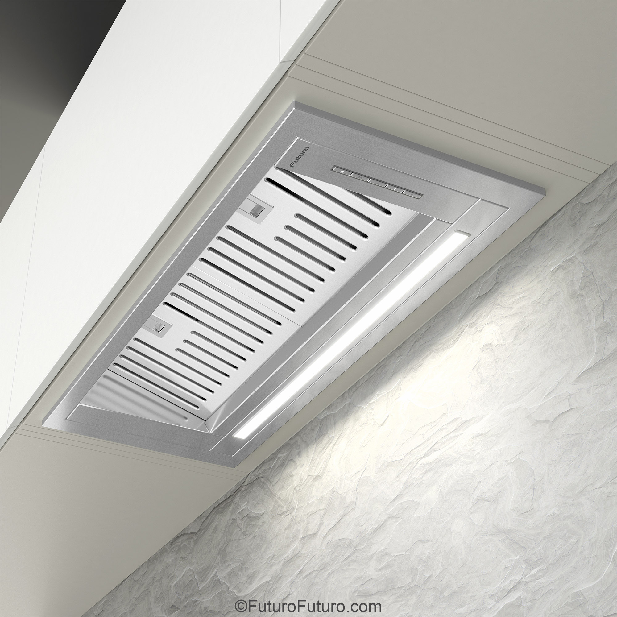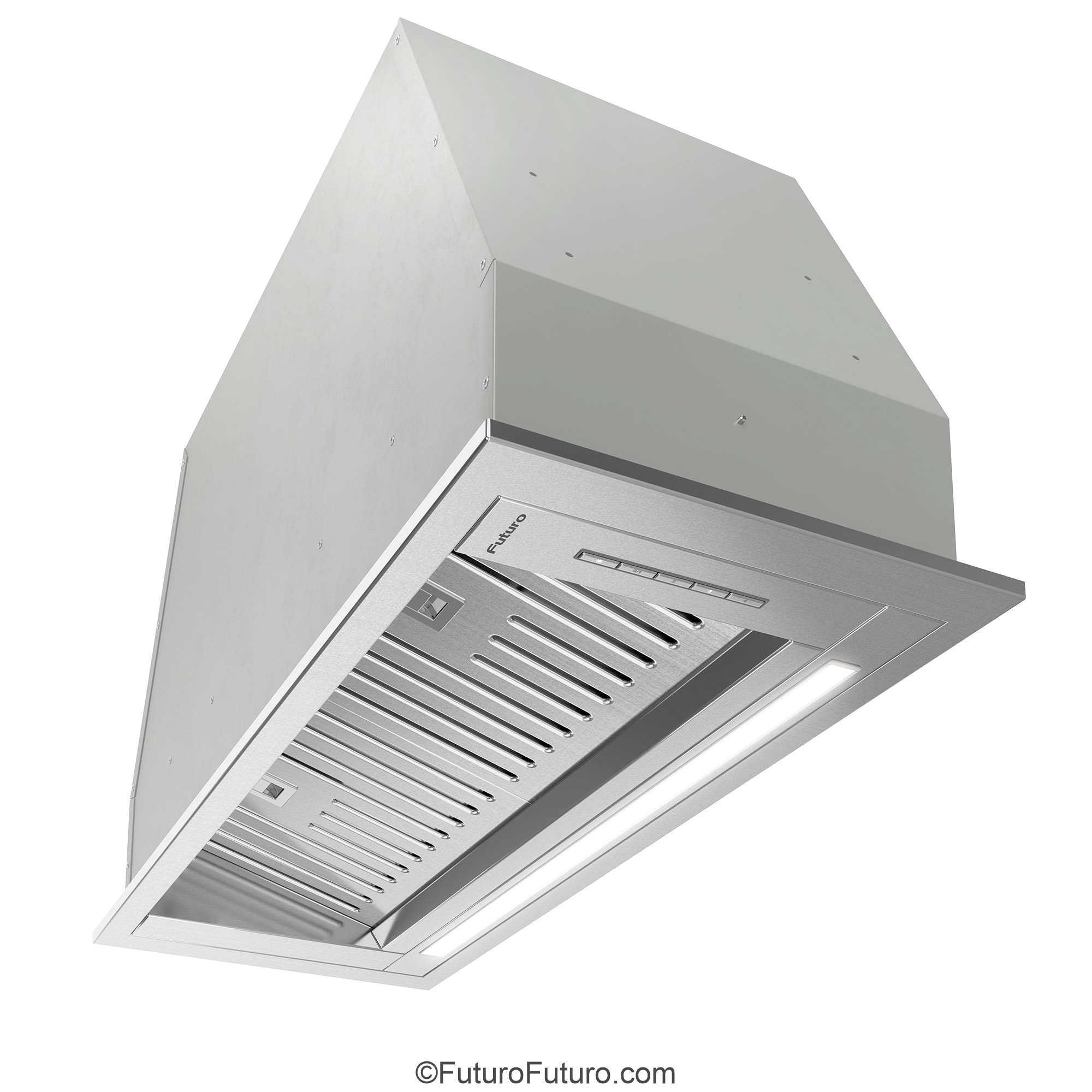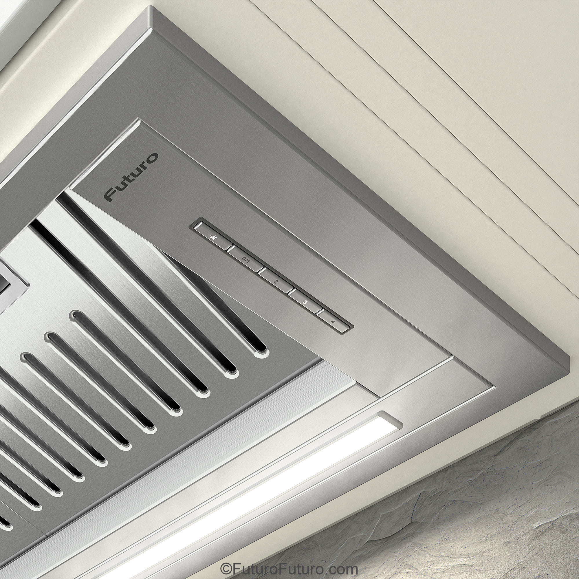 Introducing the Futuro Futuro 30″ Designo Baffle Insert Under-Cabinet Range Hood — a seamless blend of minimalist Italian design and professional-grade ventilation.
