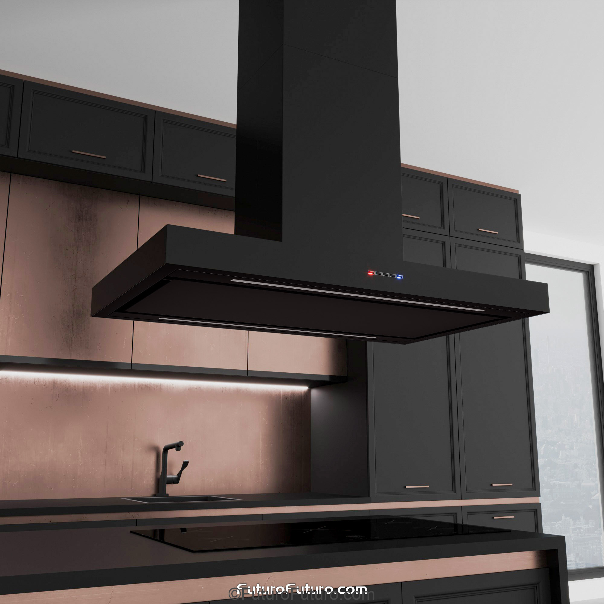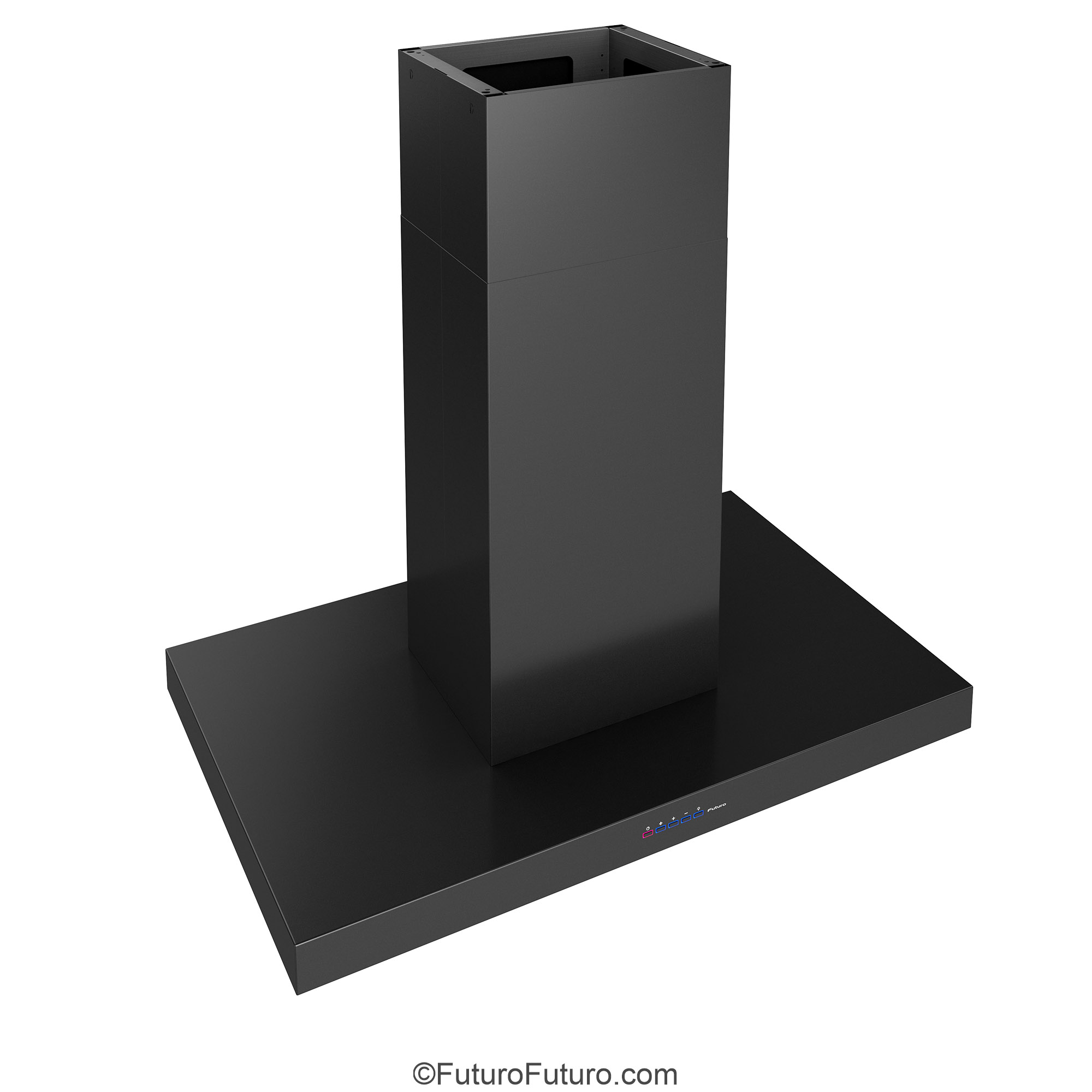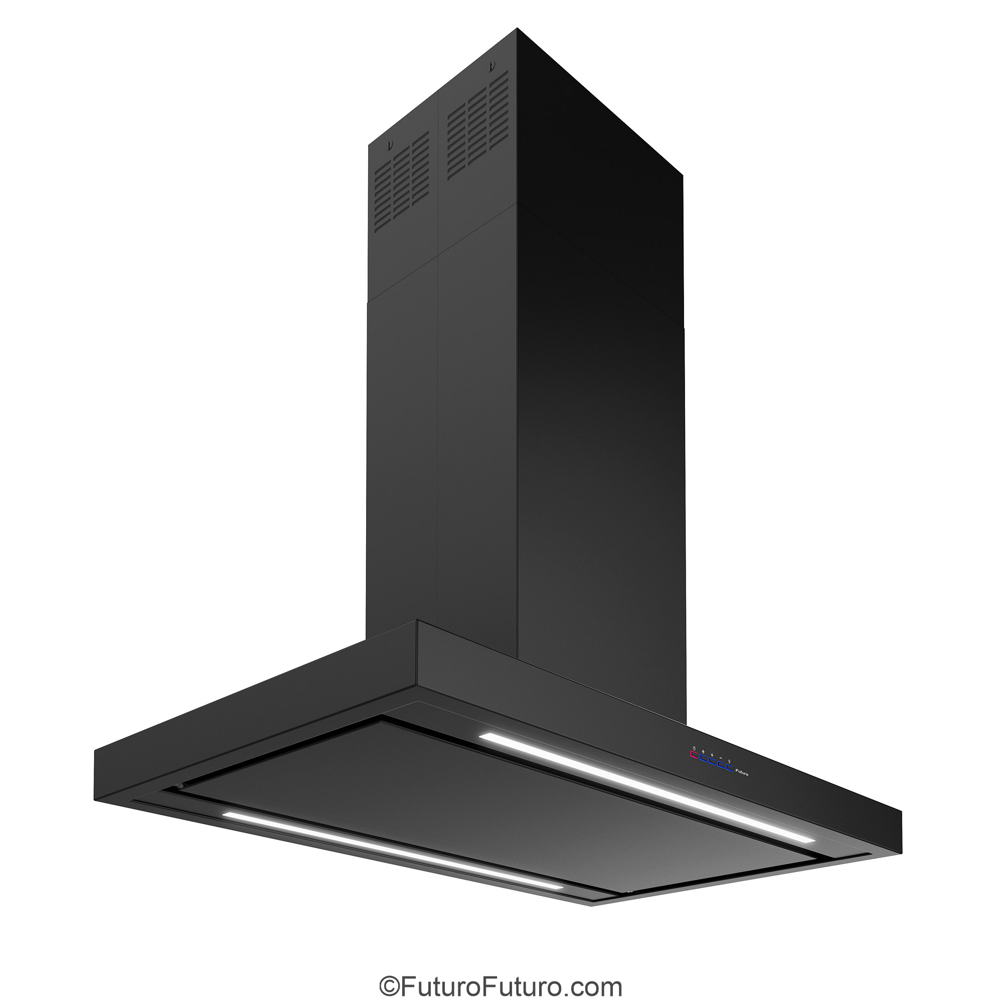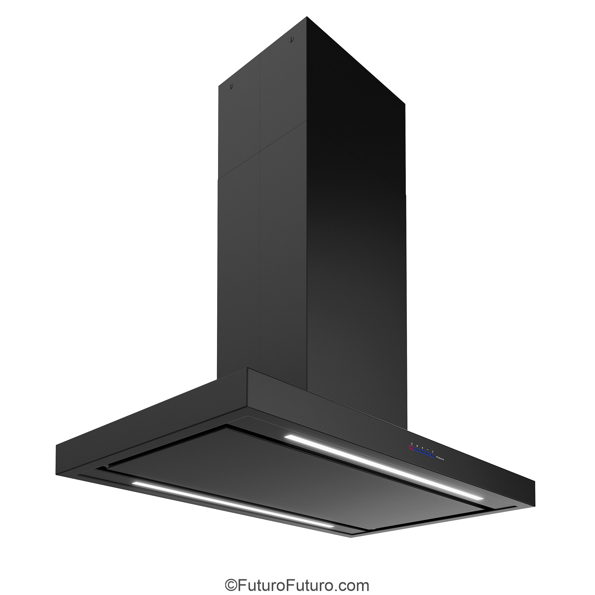 Slender and ultra-contemporary, the Futuro Futuro 36 inch Positano black island range hood is both an attractive kitchen accessory and a powerful appliance. This contemporary range hood is designed to mount to the ceiling and is built from high grade steel. Designed for durability, this modern range hood employs a unique electrolysis infusion technique to coat the exterior in a black enamel paint, resulting in a damage-resistant and stylish finish. Robust and efficient, this luxury range hood features an efficient air filtration system that works diligently to keep your kitchen clear of unwanted odors, smoke, and steam during cooking. Futuro Futuro’s advanced air filtration system redirects airflow from the center of the exhaust hood to edges, permitting increased suction of particles and contaminants with significantly reduced ambient noise. This suspended range hood also contains dishwasher safe metal grease filters that easily entrap airborne oil and grease. This designer range hood offers many user-friendly features, including its four different airflow suction speeds, a built-in, electronic, control panel, and energy efficient LED lights. The dynamic LED strip lets you dial in the exact white light temperature and brightness you need, ensuring your light is always as meticulous as your taste. Regular use and maintenance is simple and easy with this black range hood’s automated reminders that regulate and indicate when it’s time to clean the grease filters in the dishwasher to maintain this ceiling mount range hood’s optimal performance. This Italian range hood also possesses the convenient delayed shut-off function, which keeps the ventilation hood running after you have finished cooking until all odors, grease, smoke, and steam have been removed from the air. This feature allows the user to turn their focus to other tasks while the ventilation hood does the work. Customers may purchase this kitchen range hood as a ducted exhaust vent, as well as for ductless application with a help of additional set of carbon filters. All Futuro Futuro exhaust hoods come with a one year US standard plus two additional years parts warranty, and our technical experts are happy to assist with questions that may arise during installation or regular use. Proving to be as handsome as it is efficient, the 36 inch Positano black island mount range hood is a popular choice for modern kitchen owners. SKU: IS36POSITANO-BLK